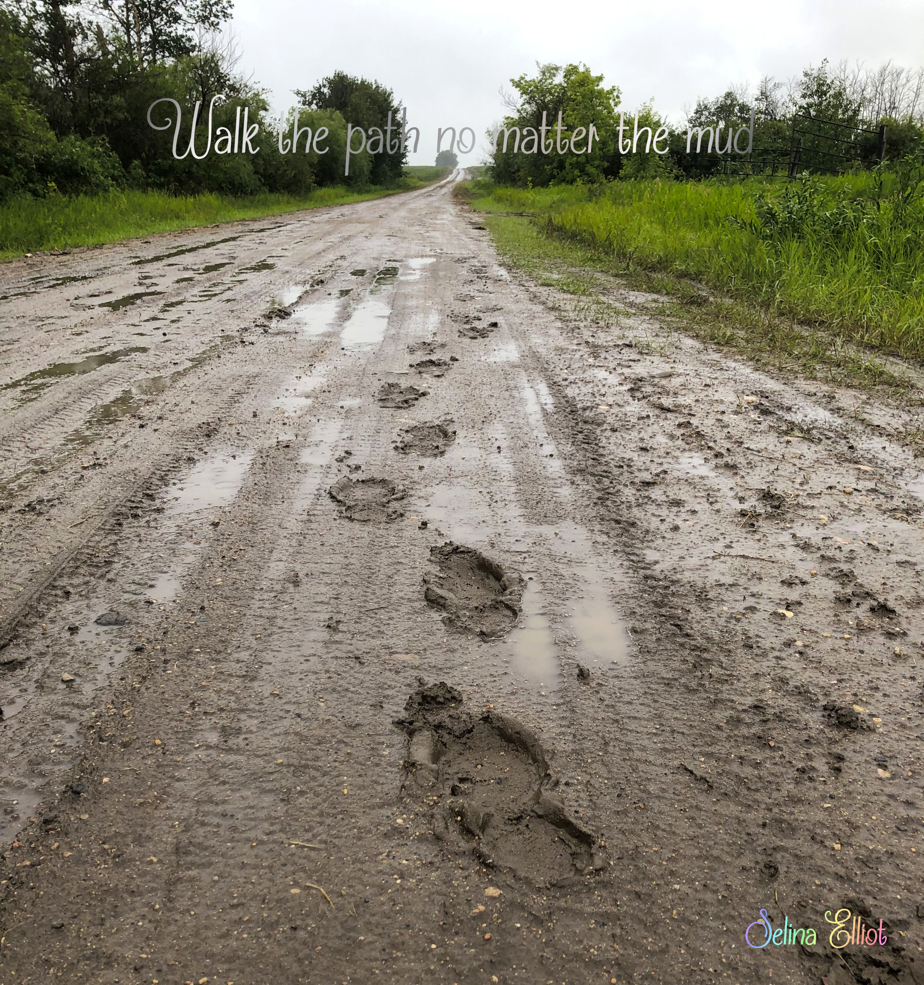 Well, a mud road now. And yep, those’re my prints in the mud. I’ve got the mud-caked shoes to prove it.