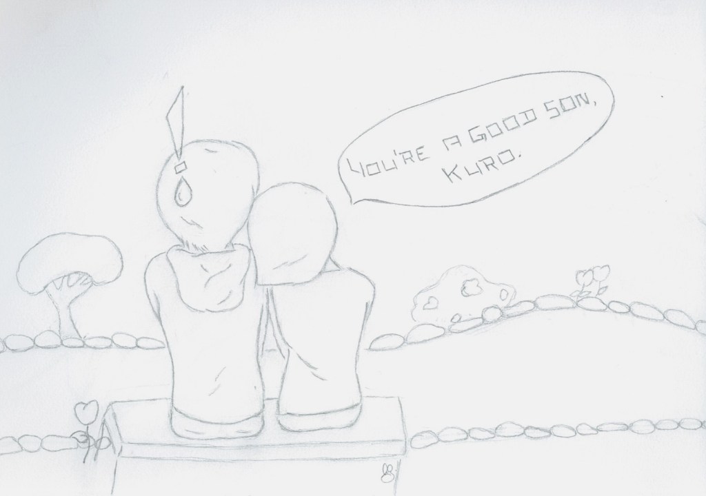 Though he was only speaking his viewpoint, it seemed to mean a lot. Her tears fell softly to his shoulder as she placed her head there. “You’re a good son, Kuro!”